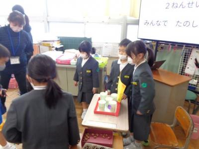 なわとびやけん玉、習字の披露やクイズやジャンケン大会など盛りだくさんでした。3年生も百寿苑の皆さんも笑顔いっぱいでした。早く対面での交流ができるようになりたいですね。