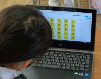 1年生が、端末を使い国語の授業をしていました。使い方もどんどん上達しています。