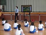 今日は、体育委員会のメンバーが1年生に向けて体育館での遊び方や使用日について説明しました。