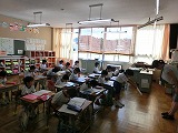 保育園や幼稚園と比べると、ちょっと量が多いような感じがしましたが、おいしそうに食べていました。言われなくてもちゃんとお茶碗を持って食べる児童が何人もいたので驚きました!残さずに完食できた児童もたくさんいました。