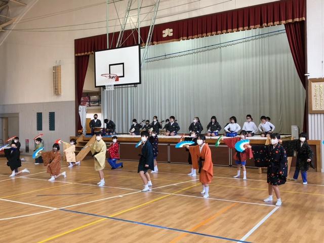 6年生を送る会に向けて、4・5年生がまだら練習を再開しました。年末のビデオ収録から1か月以上経ったこともあり、少し歌詞や踊りに不安なところがありました。来週は保存会の皆さんにも見てもらいますが、その前にもっと練習する必要があるようです。頑張りましょう。