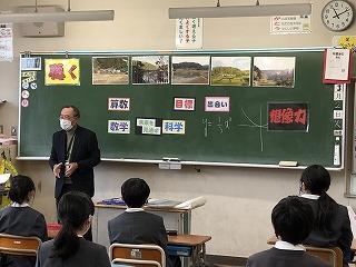 また、目標が「人との出会い」に大きく影響するという話もあり、「相手から出会ってよかったと思われる人に」「誰かのために力を出せる人間に」という話がありました。6年生はとても集中して聴いていました。