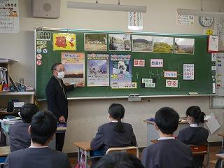 穴水町でボランティア活動をしている元中学校教諭の滝井元之氏をお迎えし、中学生になるにはどんな心構えが必要について講話していただきました。大きな人間として生きるために見たり聴いたり、考えたりしながら勉強することが必要であることを教えてもらいました。