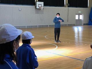 体育委員会の児童が、体育館や運動場の使い方について1年生に教えていました。伝える内容の明確化と誰に伝えるかの相手意識がされ、1年生に伝わりやすいようにイラストを使う工夫がありました。