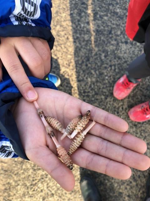 登校中に1年生が「つくし」を見つけて持ってきてくれました。もうつくしが出ているのですね。