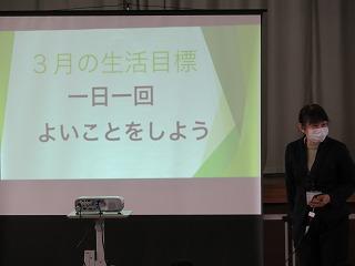 今年度最後の大屋っ子タイムが行われました。音読はなまる月間賞の表彰や各児童委員会のお知らせの後、今月の目標「よいことをしよう」や校長先生からは数字を見ながら10年前に発生した東日本大震災についての話がありました。多くの命を失った人々の思いや命の大切さ、当たり前の日々に感謝する気持ちを大事にすることを改めて考える機会になりました。