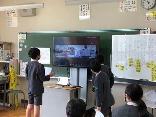 6年生は百寿苑を訪問し、お年寄りの方々との交流を計画していましたが、この状況下ではできなくなりました。そこで、オンラインを使って交流することになりました。自己紹介をしたり、ビンゴゲームをしたりしました。おばあちゃんたちは二人もビンゴになり、子どもたちの手作りのテッシュケースが当たりました。最後に「ふるさと」を一緒に歌いました。お年寄りも子どもたちもとても楽しい時間を過ごすことができました。早く直接会ってお話ができるといいです。