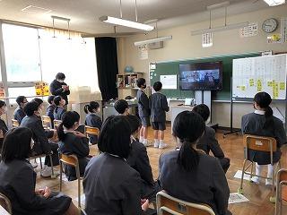 13:55~14:05のスキルアップタイムで2年生が外国語を学んでいました。H30 R1と石川県指定の英語教育強化拠点事業校として積み上げた指導法をいかして、3.4年生から始まる外国語活動に繋げています。