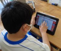 指でなぞった通りに、画面に漢字が表示され書き順が正しいか分かります。以前は「空中に書いて」と指導したものですが、これだとはっきりと子どもたちもわかります。