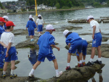 子どもたちは午前と午後の2グループに分かれて活動しました。島に着くまでに船酔いをした子も何人かいたようですが、到着してからは漂流物を集めたり、きれいな澄んだ海を思う存分およいだりするなど自然を楽しむことができました。