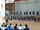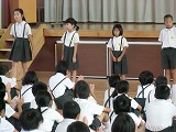 始めに全校で「a good day」の三部合唱をしました。元気な歌声でした。