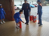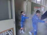 避難訓練の後は4年生対象に「防火防災授業」がありました。2つのグループに分かれ、消火訓練や煙体験の避難方法を習いました。初めての体験で子どもたちも緊張しながら活動しました。「本当の煙だったら大変なことになる」「煙を吸わないようにハンカチなどで鼻と口を覆うようにしたい」という感想がありました。大変勉強になりました。