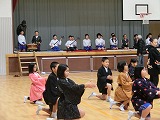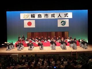 さて、新年初のお知らせは「輪島市成人式 アトラクション出演」です。4・5年生が成人式のアトラクション出演で「輪島まだら」を披露しました。先月23日の「能登の第九」から冬休みを経ているので練習不足が心配されましたが、本番では立派な演技ができました。たくさんの拍手をもらいました。