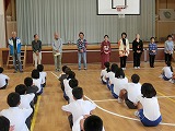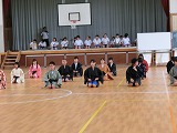 体育館に避難した後は、警察の方から「いかのおすし」や逃げ方などのお話があり、実際に1年生がやってみました。大事なことは、まずは大きな声を出して逃げることです。校長先生のお話の中で学年ごとに大きな声を出素練習もしてみました。