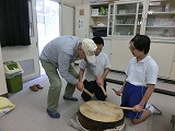 先月の引き継ぎ式を受けて、いよいよ今日から4・5年生新メンバーでの練習が始まりました。始めに、指導をしてくださる輪島まだら保存会の皆さんの紹介があり、その後は各パートに分かれて練習しました。初めて習う4年生は少々緊張気味でしたが真剣に取り組んでいました。