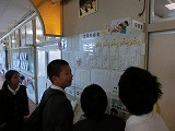 今年度は縦割り班活動を活かし、8グループの対抗戦(走った周数を競い合う)というシステムを取り入れています。児童玄関前には各グループのポスターが貼ってあり、シールの数を見比べてやる気を出す児童が何人もいました。