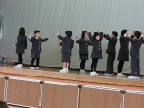 さて,この日のためにどの学年も練習を重ねてきました。残念ながら風邪の流行で欠席者が多く,緊急に代役を立てたり,内容の変更をしたりしました。しかし,どの学年も全力で自分の役割に取り組みました。特に5年生は準備や司会など会の運営に大活躍でした。一人一人の頑張りが集まってすばらしい送る会になりました。