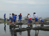 3・4年生はのと海洋ふれあいセンターに行ってきました。飛び石の上はまるで海の上を歩いているようでとても楽しい時間を過ごすことができました。また,磯でウミウシやヤドカリなど浅瀬の海洋生物の観察も楽しみながら勉強しました。