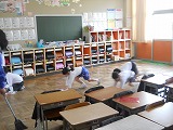 本校では、昨年度末からもくもくそうじ前の1分間を「トキの里タイム」としています。子どもたちはそうじに取りかかる前に静かに黙想し、心を落ち着けています。