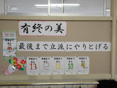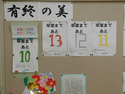 6年教室ではカウントダウンの掲示をして少しずつ卒業に向けて心の準備をしています。