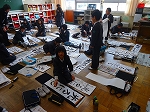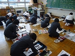 書写の時間に学習したことと冬休みの間に練習した成果を発揮して、とても上手に書いていました。清書した作品を各教室前の掲示板に掲示しましたが、明日9日には持ち帰ります。