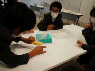 図書室で火災時の煙(安全なものです)を児童全員が体験し、適切な避難方法を学びました。