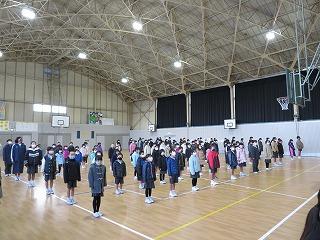 始業式では学年代表が3学期に頑張りたいことをわかりやすく話しました。校長先生からは「丑年」の意味にたとえて、「子年で蒔いた種がゆっくりと芽を出すように、これまでの基礎を定着させて勉強や運動に一生懸命に取り組み、次の学年の準備を着実にしましょう」というお話がありました。