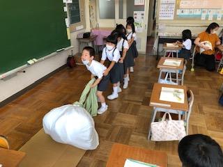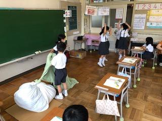 1年生は国語で「大きなかぶ」を学習しています。今日は音読に合わせて役割演技をしました。子どもたちはみんなで力を合わせてかぶを抜くときの台詞や手助けを頼むときの言い方を工夫してしました。