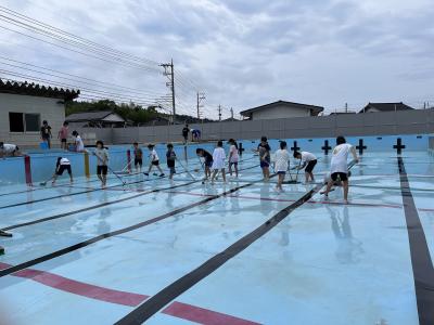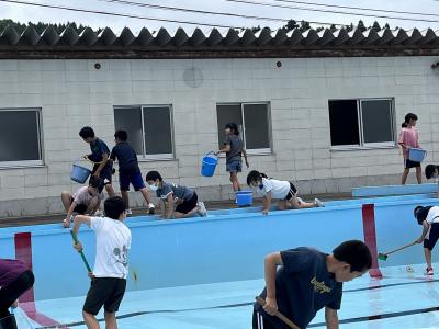 15日(木)午後から4・5・6年生がプールの掃除をしてくれました。
