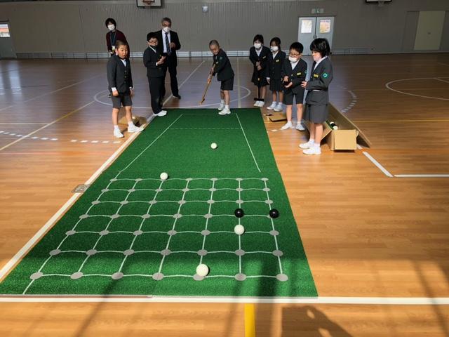 2年生は生涯スポーツでもある「ボッチャ」「囲碁ボール」をしました。特に、初めて体験した「囲碁ボール」は人気がありました。スティックの力の加減が難しかったのですが、だんだん上手にできるようになりました。みんな仲良く楽しみました。