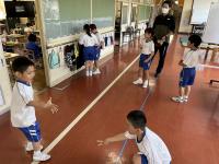 今日は2年生が1年生へ学校の紹介をしに来てくれました。学校の中のいろいろな場所を絵と言葉でわかりやすく教えてくれました。