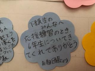 2学期から『ありがとうの木』を始めました。今回は、みんなで心をひとつにして『ありがとうの木』を育てて、さらにすてきな運動会にしよう!をねらいに掲げ、「親切・思いやり」を重点に取り組んでいます。