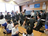 お昼休みに、音楽クラブがこの一年間の成果を発表しました。たくさんの児童が聞きに音楽室に集まりました。校歌など3曲演奏しました。