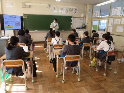 5年生は郷土を愛する心について考える『親から子へ、そして孫へと』で、まだらの指導者である加治さんに伝統文化の継承についてお話ししていただきました。