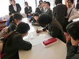 8の字跳び大会に向けて、縦割り班で作戦会議をしました。跳ぶ回数を少しでも多くするために、跳ぶ順番や縄を回す人を誰にするか等みんなで話し合いました。