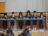 授業後は、入学説明会が行われました。中学校からは生徒会の3名が学校生活や部活動等について説明してくれました。そのうちの2名は本校の卒業生で、とても誇らしく感じました。