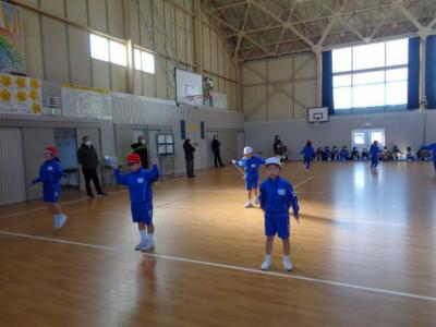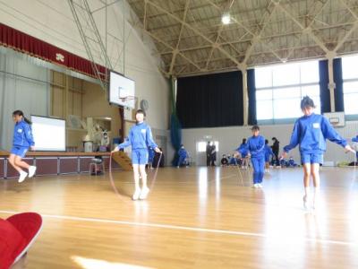 個人の技披露 学年対抗8の字跳び 縦割り班対抗8の字跳びをしました。