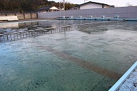 本校のプールには、なんと表面に氷が張っています。