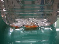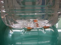 稚魚のおなかの養分が無くなった頃が放流時期で、まだ一部の稚魚が残っています。