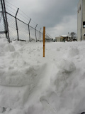 さて,輪島市の中心部でこれほどの積雪は30年ぶりということです。児童玄関から運動場に行くところに1mの竹ものさしを刺してみるとちょうど半分埋まりました。運動場に行くには,この50cmの雪を越えて行かなければなりません。