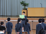 受け取った後,全校にむけて自分ががんばることをを発表しました。
