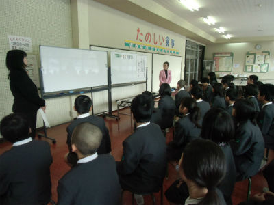 生徒指導からルールの確認と1月の生活目標「大きな声で返事をしよう」について話がありました。ズックのはき方,名札,シャツインなどみんなが知っているルールを再確認しました。