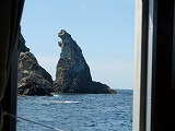 船の中から見える「ゴジラ岩」     たくさんの漂流物