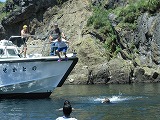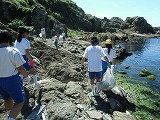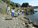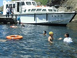 子どもたちは午前と午後の2グループに分かれて活動しました。島に着くまでに船酔いをした子も何人かいたようですが、到着してからは漂流物を集めたり、きれいな澄んだ海を思う存分およいだりするなど自然を楽しむことができました。