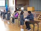 2回目のノート検定が体育館で行われました。今回は、国語のノートを検定しました。決められた形式に書かれているかを見ました。合格者にはノートに合格シールが貼られ、ホッとした気持ちと嬉しい気持ちが混ざった表情をしている児童が印象的でした。全体的に前回よりも字もきれいになり、見やすくわかりやすいものになっていました。