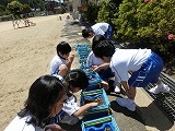 今日は天気が良く、初めて運動場でスタンツ練習をしました。