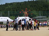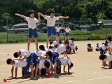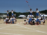 高学年も最後の参加種目「スタンツ」で息のあったところを