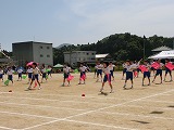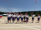 低学年のフラッグダンスでは、1年生も上級生に負けないくらい