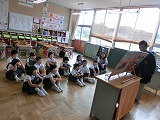食事の後は鳳至小学校の戸田栄養教諭から「給食ができるまで」の