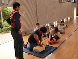 夏休みのプール開放が近いこともあり、保護者と教職員対象に救命講習会が行われました。輪島消防署から3名の署員を講師にAEDの使い方などの練習を行いました。